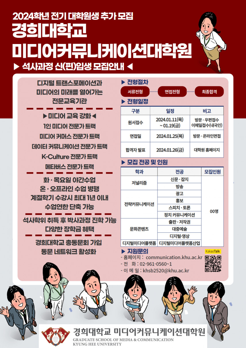 경희대학교 미디어커뮤니케이션대학원 입학안내입니다.