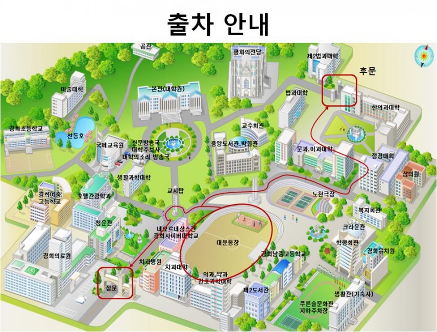 출차시 정문이 복잡한 경우 후문을 이용하시면 편리합니다. (약도 참조)