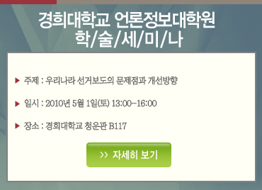 ::: 경희대학교 언론정보대학원 학술세미나 : :: 등록일 10-04-14 14:19 작성자 디자이너™ 조회수 10,852 ` 이전글2010-1학기 성적장학금 수혜자 명단 공지(최종) 다음글 [필독] 전공기초 종합시험 수험생 유의사항 안내 목록