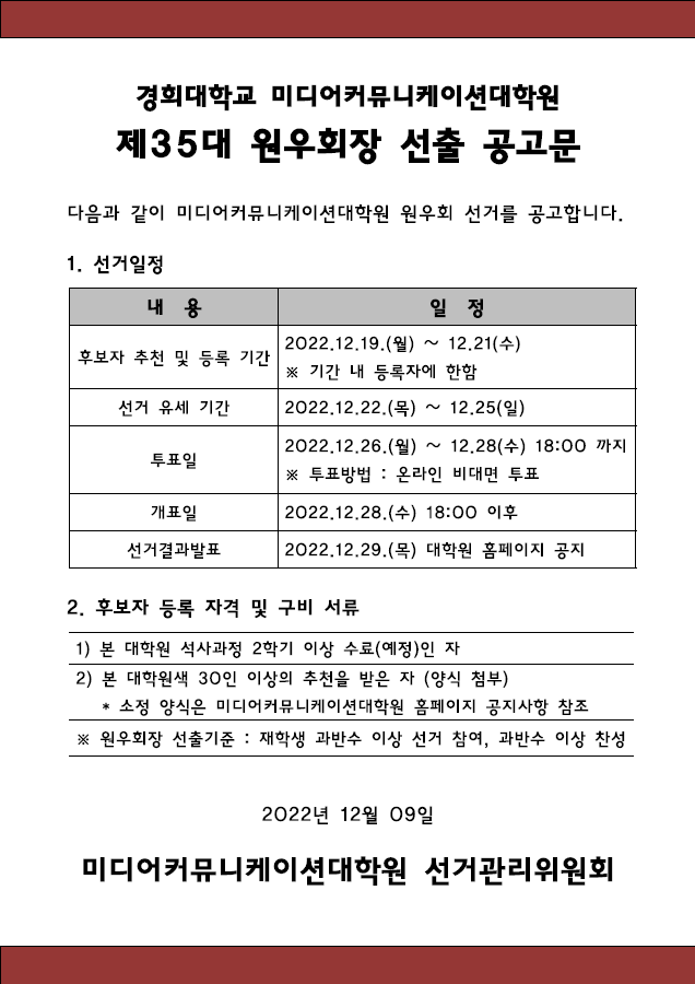 제35대 미디어커뮤니케이션대학원 원우회 선거 일정 안내