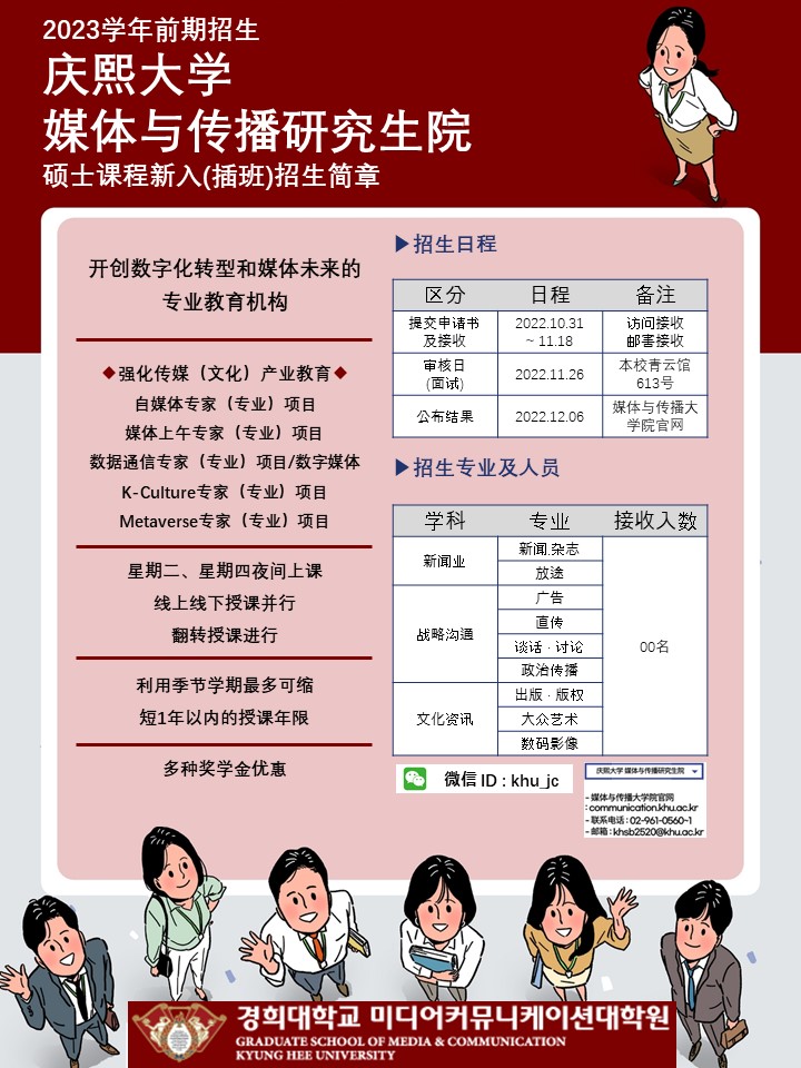 [입시]2023학년도 전기 미디어커뮤니케이션대학원 석사과정 신(편)입생 일반전형, 외국인전형 모집