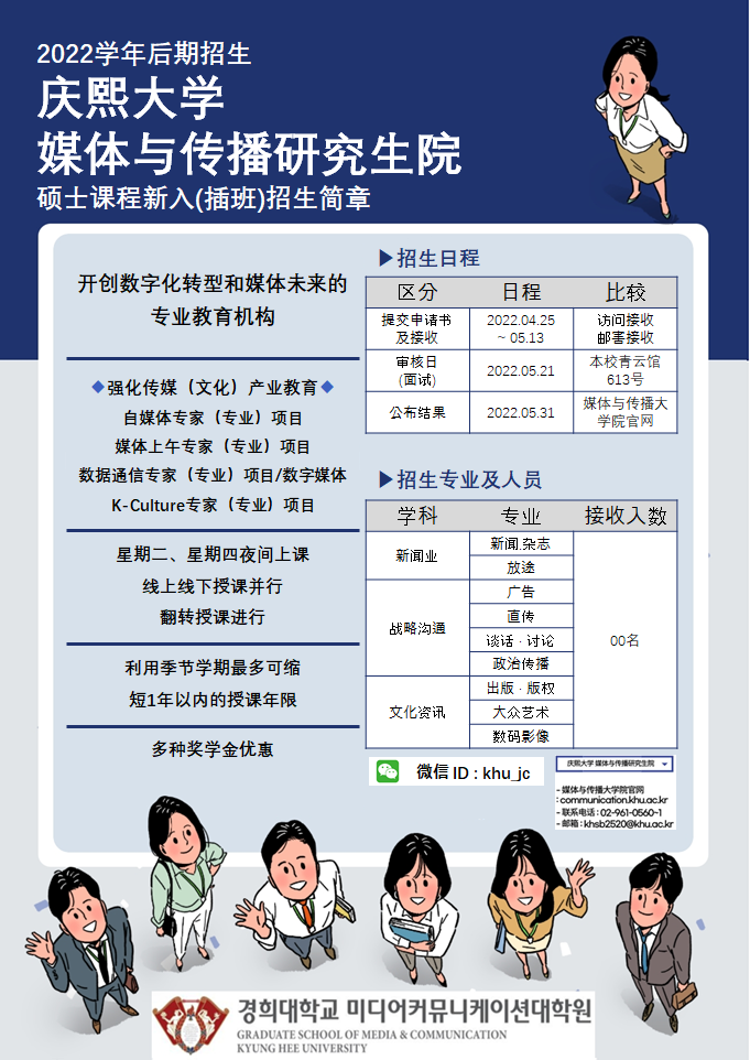 [입시]2022학년도 후기 미디어커뮤니케이션대학원 석사과정 신(편)입생 일반전형, 외국인전형 모집