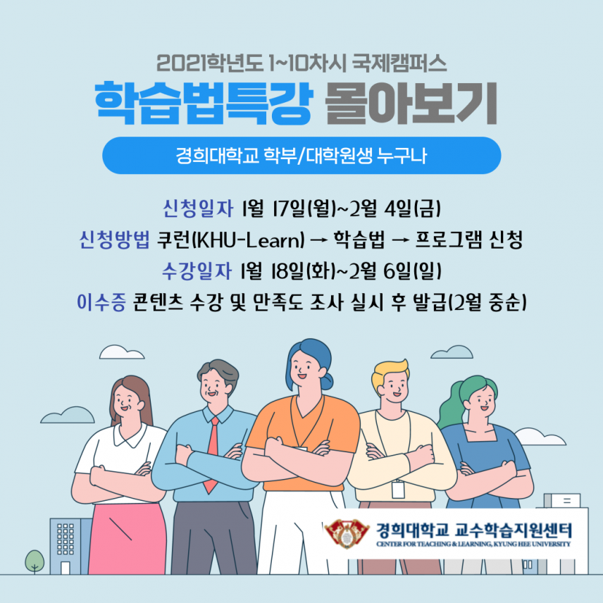 3) 신청 방법: 쿠런(KHU-Learn) 접속 → '학습법'에서 프로그램 신청(차시별 프로그램 중복 신청 가능)