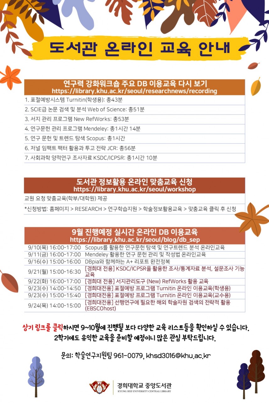 라. 문의: 중앙도서관 학술연구지원팀(961-0079, khsd3016@khu.ac.kr)