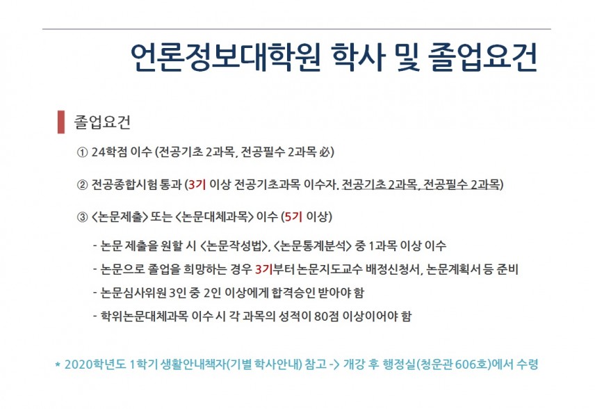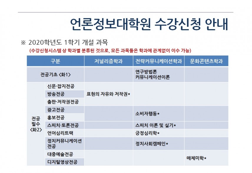 언론정보대학원에서는 신입생들의 원활한 대학원 생활과 학사 운영의 편의를 도모하고자 신입생 입학식 및 오리엔테이션을 진행하고자 하였으나 코로나19로 교내 단체 행사가 모두 취소 또는 연기되었습니다.