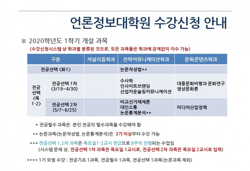 교과과정 및 수강신청 방법에 대해 다음과 같이 안내드리오니 필히 숙지하시기 바랍니다.
