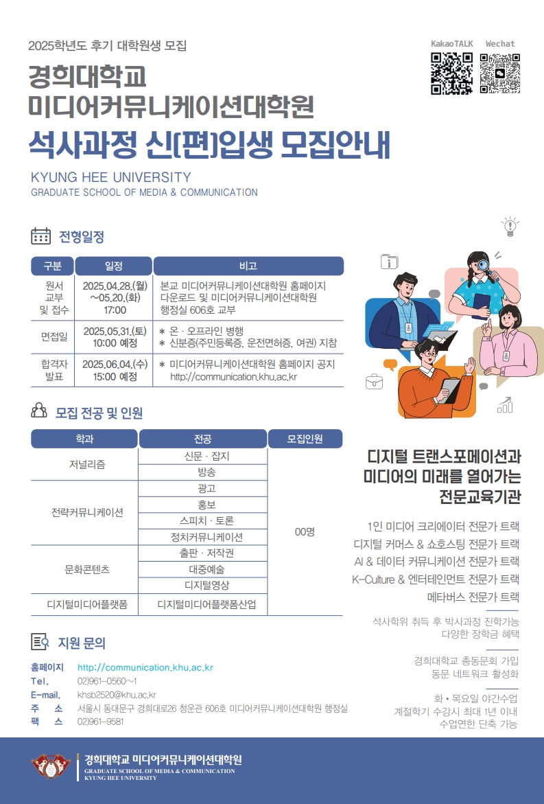 [입시] 2025학년도 후기 미디어커뮤니케이션대학원 석사과정 신(편)입생 일반전형 및 외국인전형 모집