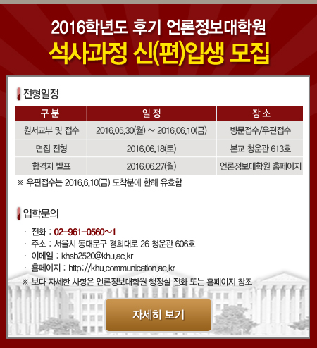 2016 후기 신(편)입생 모집 안내 등록일 16-05-19 16:12 작성자 디자이너™ 조회수 9,795 이전글[종합시험]2016-1학기 전공필수 종합시험 결과발표 다음글 2016학년도 후기 신편입생 입시전형 모집 목록