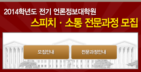 2014학년도 전기 언론정보대학원 스피치·소통 전문과정 모집 등록일 13-12-27 15:52 작성자 디자이너™ 조회수 9,263 이전글2013학년도 동계방학 중 단축근무 실시 다음글 2014학년도 전기 언론정보대학원 '스피치·소통 전문과정' 모집 안내 목록