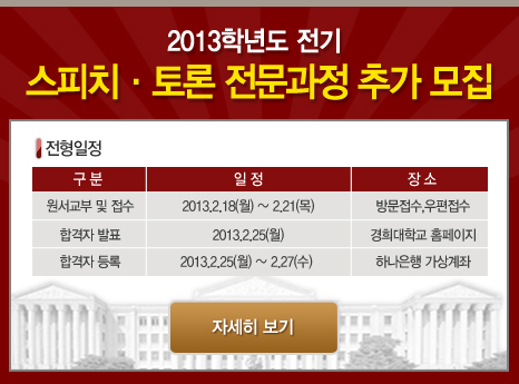 [입시] 2013학년도 전기 스피치·토론 전문과정 모집 등록일 13-01-10 15:21 작성자 디자이너™ 조회수 9,798 이전글[재입학]2013-1학기 재입학 안내 다음글 2012학년도 동계방학 중 단축근무 실시 목록