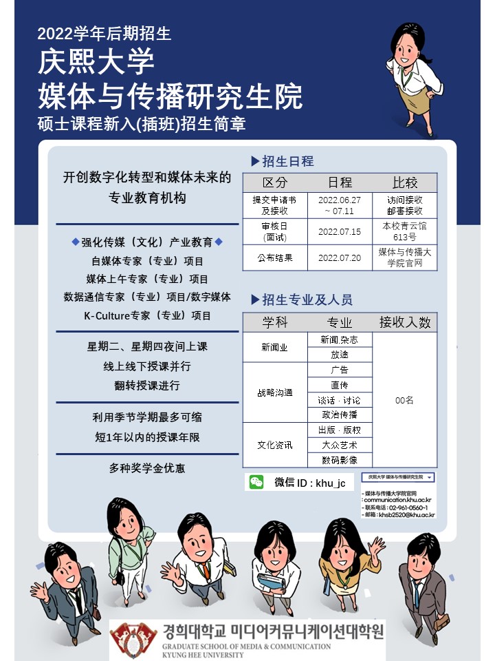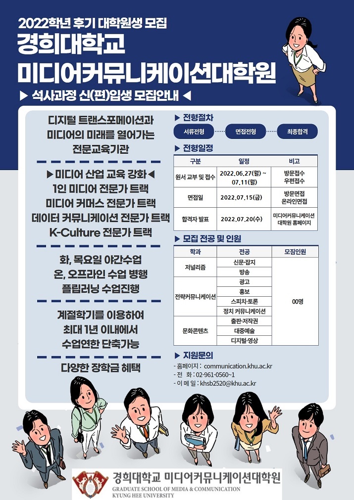 [입시]2022학년도 후기 미디어커뮤니케이션대학원 석사과정 신(편)입생 추가 모집(일반전형,외국인전형)