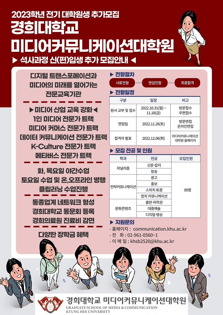 [입시]2023학년도 전기 미디어커뮤니케이션대학원 석사과정 신(편)입생 일반전형, 외국인전형 모집